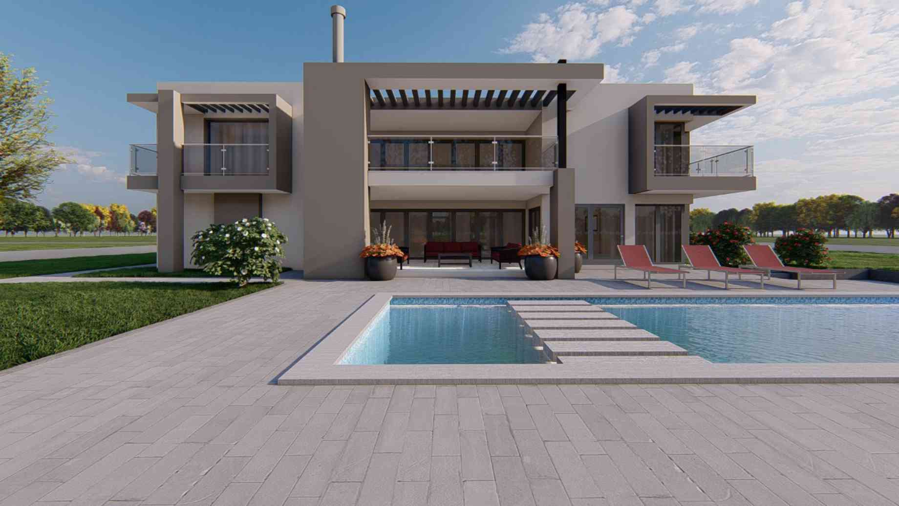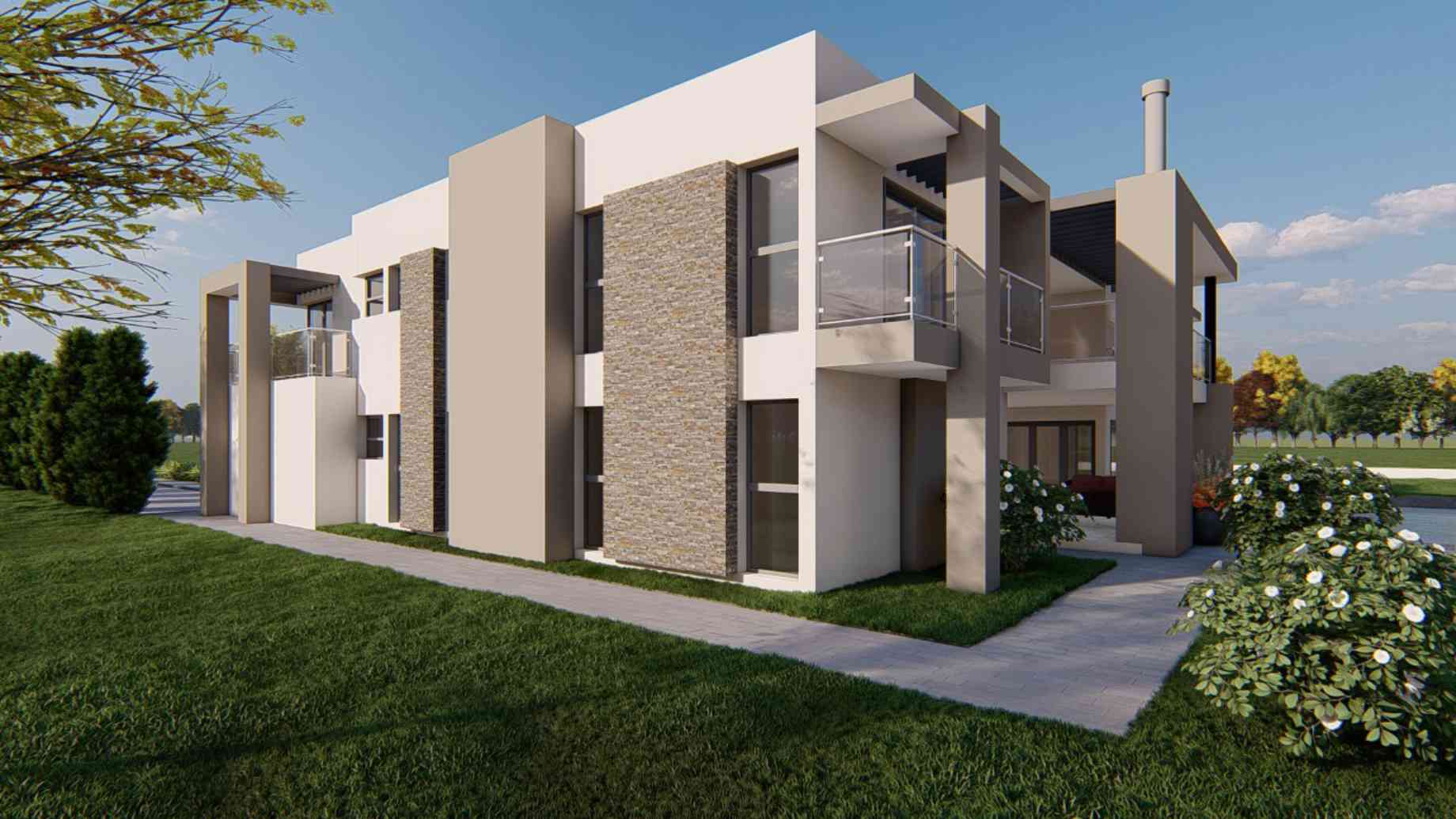 This luxury 5 Bedroom, open plan double volume living area sits in a neighbourhood in Thabazimbi with a mountain backdrop. It has 2 double garages and a lifestyle kitchen and dining open plan configuration. Natural lighting and ventilation are maximised with full height sliding windows and folding doors on the living area both on the Ground and First floors